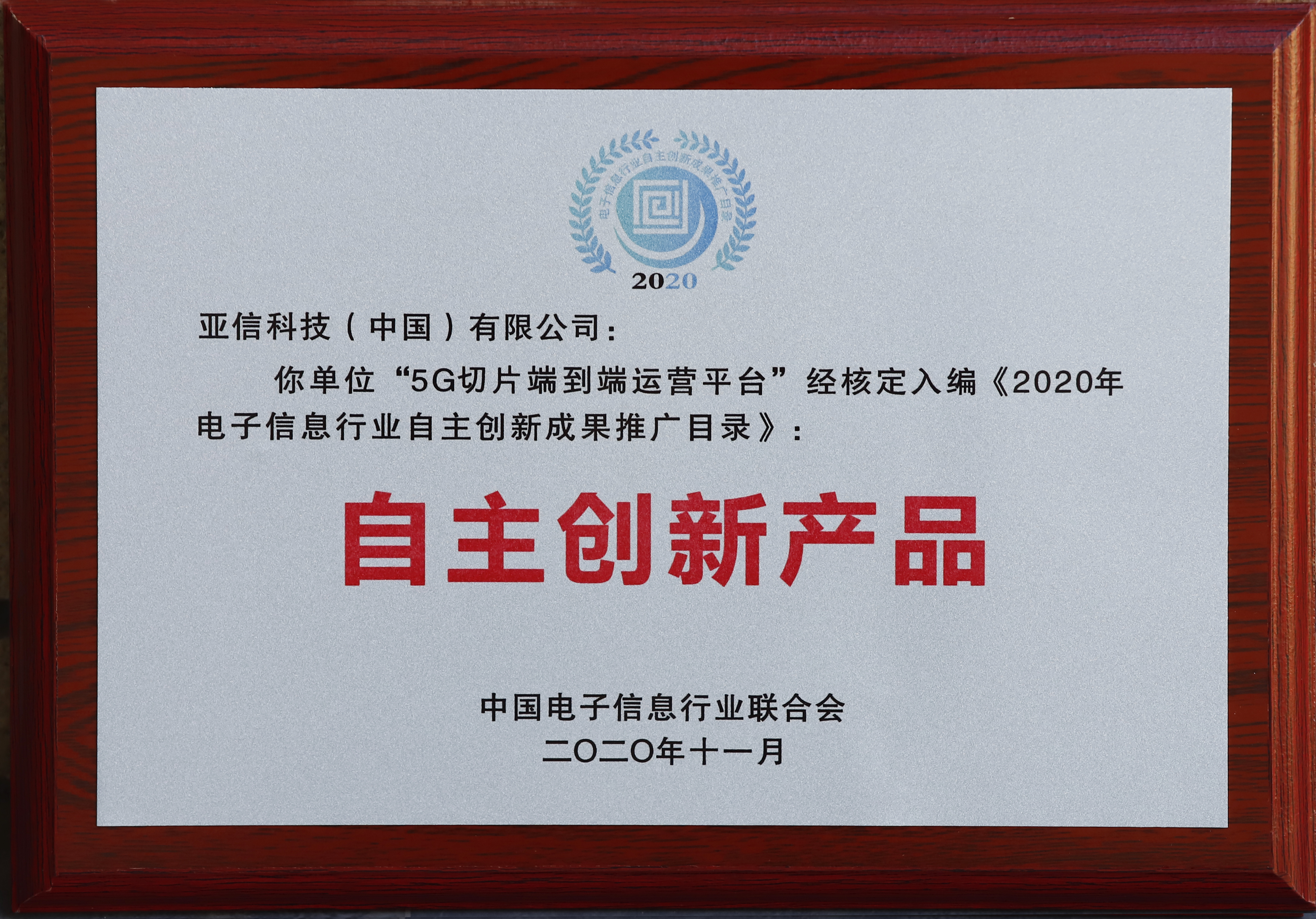 2020年11月 304am永利集团5G切片端到端运营平台荣获“自主创新产品”
